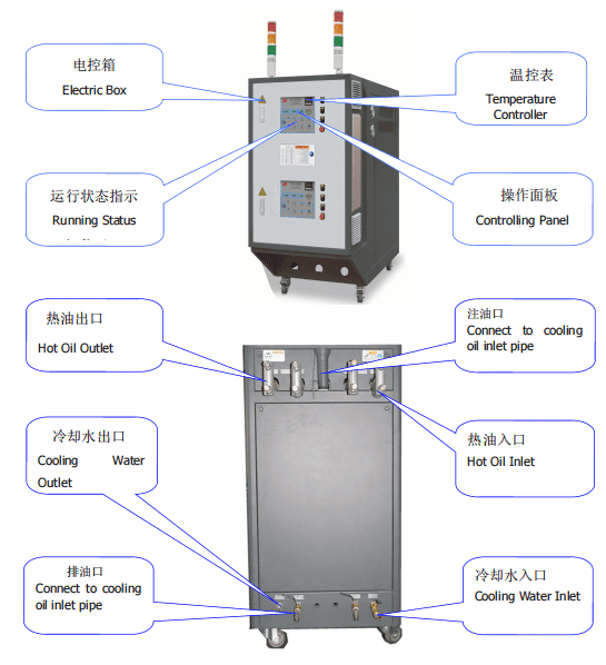 Conception durable et nécessitant peu d'entretien : le tube chauffant est fabriqué en Incoloy 800 (résistant à la corrosion de l'huile thermique et de l'eau), avec une durée de vie de 8 000 heures, soit deux fois celle des tubes en acier inoxydable ordinaires. L'armoire a un indice de protection IP54, empêchant la poussière et les éclaboussures de liquide (courantes dans les ateliers de moulage sous pression) d'endommager les composants internes. L'entretien est simple : le réservoir de liquide dispose d'un grand port de nettoyage (diamètre 100 mm) qui permet d'éliminer facilement les sédiments, et le filtre est remplaçable en 2 minutes (aucun outil nécessaire). Un client européen a déclaré consacrer seulement 2 heures/mois à la maintenance, contre 8 heures avec son ancien contrôleur.